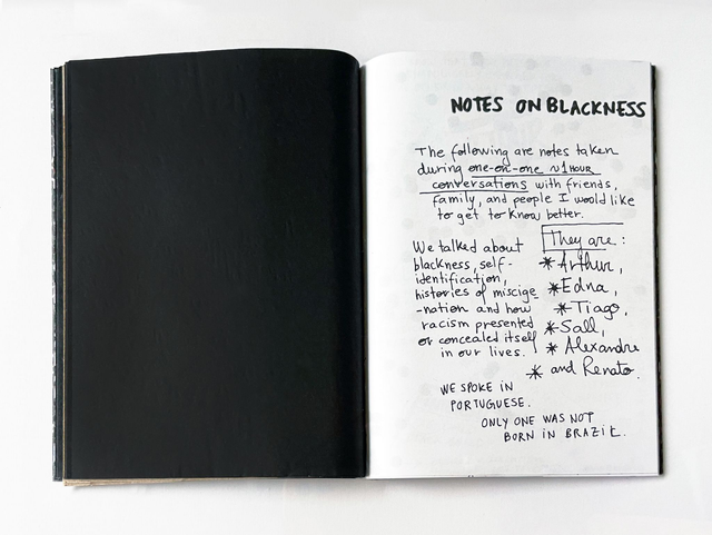 ᴇ ᴇᴜ ᴄᴏᴍ ɪꜱꜱᴏ? (ᴡʜᴀᴛ ʜᴀᴠᴇ ɪ ɢᴏᴛ ᴛᴏ ᴅᴏ ᴡɪᴛʜ ᴛʜᴀᴛ?) by Marina Dubia is a work that demands the viewer to engage and look closely. The origin of the work is a fragile, intimate text once removed from an email almost a decade ago. Too important to delete forever, the text was uncovered, built upon and is the basis of the artist’s exploration of blackness through conversations and correspondence with family and friends.